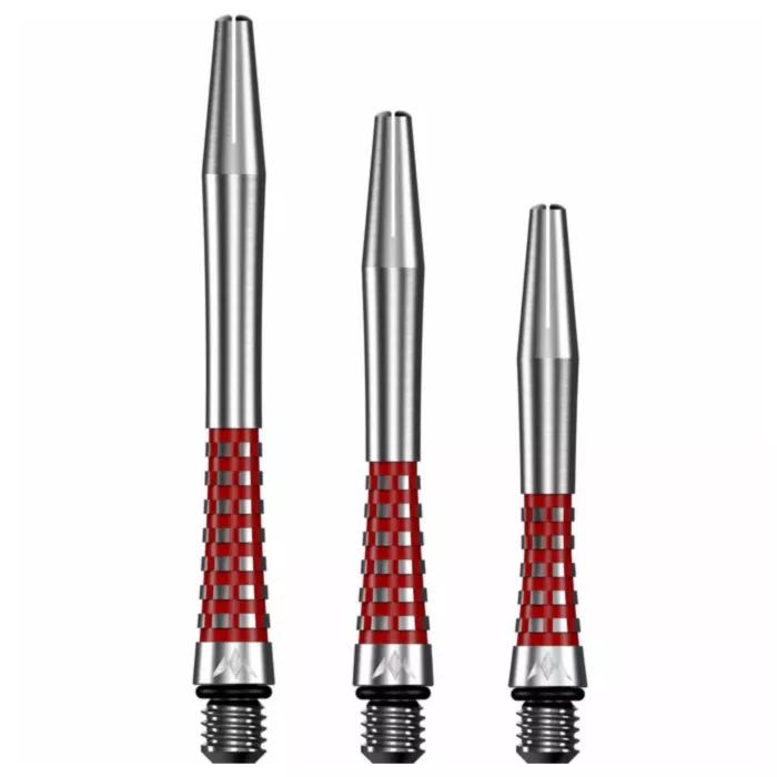 Mission Atom13 Aluminium Shafts - Anodised Metal Stems. Uniek vormgegeven aluminium shafts verkrijgbaar in 3 lengtes. Verpakt in set van 3 shafts.